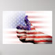 Um grande dedo "como" com a bandeira americana pintada numa mão. A bandeira dos EUA está no fundo. Dons de excelente para feriados patrióticos como Dia dos Veteranos, Dia do Memorial, 4 de julho ou até aniversário.