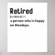 Engraçado Reformado define uma pessoa que está feliz nas segundas-feiras uma festa engraçada de aposentadoria presente para ela