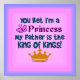 Aqui está uma mensagem divertida, mas profunda para mostrar ao mundo que você é uma princesa e seu pai é o Rei dos Reis!:p Obrigado por checar esta design! Você pode ver muito mais de meus designs aqui no Zazzle no link da minha loja pessoal: www.zazzle.com/serendipityTs ou www.serendipityTs.com