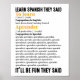 Poster Aprenda Espanhol Será Divertido Que Eles Disseram