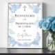 Celebrar a magia do marco dos três años do seu filho com o nosso cartaz especial de assento espanhol. Uma mistura perfeita de borboletas delicadas e sossego acentuado floral em uma paleta de cor azul macia e poeirenta, esse convite captura com magia a essência da elegância e alegria juvenis. Deixe o encanto deste convite único dar o tom para um aniversário cheio de amor, risos e memórias.