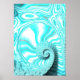 Poster Aqua Blue Nautilus Shell Fractal Abstrato