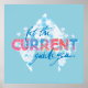 Este gráfico da tipografia lê "deixou o guia atual você", escrito sobre um logotipo denominado sextavado de Aquaman em cores brilhantes.