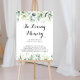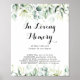 Este pôster de aquarela de eucalipto verde em memória afetuosa é perfeito para um casamento rústico ou chá de noiva. Este design artístico apresenta folhagem verde de eucalipto desenhada à mão, inspirando beleza natural.