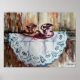 Poster Aquarela de xícaras de chá, linho de rendas. pared