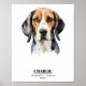 Celebre seu Beagle com este pôster aquarelado personalizado. Apresentando o nome, data de nascimento e raça, é uma homenagem emocionante ao seu amigo peludo.