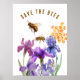 Aquarelas elegantes e coloridas florais Salvem o poster de amantes da natureza das abelhas,