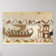 Aqui Earl Harold, da Escola Francesa (c.1022-66), retorna à Inglaterra, detalhado da Tapeçaria Bayeux, antes de 1082 (bordado de lã sobre linho) localizado na Musee de la Tapisserie, Bayeux, França. O aqui Earl Harold (c.1022-66) retorna à Inglaterra, detalhe da tapeçaria Bayeux, antes de 1082 (bordado de lã sobre linho) foi criado por volta do século 11.