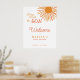 O estilo moderno da boêmia "aqui vem o filho", chá de fraldas de boas-vindas, poster com um brilho de sol e um bonito roteiro retrô.