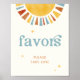Este cartaz charmoso apresenta um design boho com um adorável sol aquoso, colocado contra um fundo branco suave. As cores muda de amarelo, laranja e azul, combinadas com a fonte retrorada, criam um aspecto quente e convidativo. Coloque esta placa na mesa dos seus favores para que os convidados saibam onde encontrar as suas guloseimas.