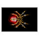 Aranha mecânica, com pá-pá de ouro, engrenagens de latão e uma lâmpada de vidro vermelha sobre fundo preto. Estilo Steampunk.