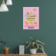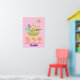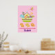 Um pôster personalizado com uma arca de animais fofos cheia de animais selvagens em um fundo de bolinhas rosas. Uma borboleta e um leão e alguns tigres também estão por fora do barco. Ilustração de arte em estilo de berçário fofo.