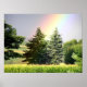 Um impressão fantástico de um belo arco-íris através de um campo atrás de Evergreens. Quando, obviamente, reside o "pote de ouro" :)
