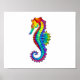 Articulação artificial, brilhante, arco-íris, cavalo de mar poligonal sobre fundo branco. Tatuagem brilhante.