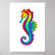 Articulação artificial, brilhante, arco-íris, cavalo de mar poligonal sobre fundo branco. Tatuagem brilhante.