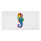 Articulação artificial, brilhante, arco-íris, cavalo de mar poligonal sobre fundo branco. Tatuagem brilhante.