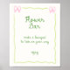 Sinal de bar de flores para download de chá de panela bonito com moldura verde e rosa com arcos e fonte manuscrita peculiar.