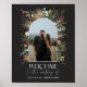 Cartaz de boas-vindas ao casamento com data de casamento moderna e elegante, aquarela, botânica seca, floral escura, cores suaves e arco de 1 foto. Moderno e impressionante, tendência de inverno, outono, preto, ferrugem, verde sage, natural e terracota com design botânico seco. Parte de um conjunto.