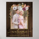 Sinal de Boas-Vindas de Casamento com Arco Floral de Madeira Rústica com um arco elegante emoldurado com flores rústicas e folhagens em um fundo de madeira de casa de fazenda rústica. Nossa tipografia de roteiro personalizada combinada com sua foto e detalhes torna este o complemento perfeito para o seu casamento, recepção ou evento. Por favor, entre em contato conosco em cedarandstring@gmail.com se precisar de ajuda com o design ou produtos correspondentes.