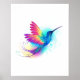 Bela, iridescente, exótica beija-flor voadora sobre fundo branco, pintada com pintura multicolorido, aquarela. Cotovelo-cotovelo.