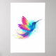 Bela, iridescente, exótica beija-flor voadora sobre fundo branco, pintada com pintura multicolorido, aquarela. Cotovelo-cotovelo.