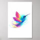Bela, iridescente, exótica beija-flor voadora sobre fundo branco, pintada com pintura multicolorido, aquarela. Cotovelo-cotovelo.