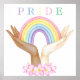 Pride aquarela arco-íris cores descrição e mãos em flores cor-de-rosa sobre fundo branco. Não importa qual seja sua orientação e sua cor de pele, você ainda é um humano.