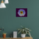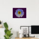Essa bonito poster apresenta uma fotografia de uma flor de marigold que foi manipulada para criar uma bela flor com uma mistura de cores do arco-íris. A flor está sobre um fundo roxo escuro dramático. Uma bonito borda roxa completa a design.