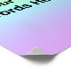 Esta poster apresenta um bonito gradiente de arco-íris pastel e suas próprias palavras! Projetado no estado de Washington, EUA para sua diversão. Obrigados para apoiar artistas independentes!