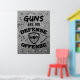 Promova a posse responsável de armas com nosso poster convincente: "Armas são pela Defesa e não pela Ofensa." Apresentando um fundo metálico robusto com detalhes de buracos de bala, este design conduz para casa a mensagem crítica de segurança e defesa de armas. Perfeito para qualquer espaço em que a segurança seja fundamental, este poster serve como uma declaração ousada defendendo a utilização correta das armas de fogo. Elevem seu entorno com este poderoso lembrete — comprar agora e inspirem uma cultura de responsabilidade e proteção!