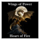 Um dragão de ouro feroz a crescer com a lua de cheio no fundo. Um slogan "Asas de poder, coração de fogo" rodeia a imagem. Uma imagem excelente para um homem ou uma mulher que gosta de fantasia. Contém conteúdo generativo.