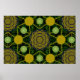 Array de mandala digital feito com fotos de dentes-de-leão em um fundo com padrão de folhagem verde. Você pode adicionar texto a isso.