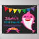 Procurando um detalhe extra fofo para a foto do primeiro dia de aula deste ano? Este letreiro de tubarão colorido e arco-íris é muito fofo e colorido. Apresenta um adorável tubarão rosa, bandeirolas nas cores primárias vermelho, amarelo, laranja, verde e azul. Pode ser personalizado com qualquer nome e série.