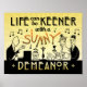 Este poster único, antigo, é feito para se parecer com um design de deco de 20. Os dois homens e uma mulher na design apareceram originalmente num anúncio de um 1920 em um jornal. Aqui, eles foram refeitos em músicos e partidários. O homem à esquerda toca piano e a mulher toca o tambor casualmente enquanto bebe o vinho. O outro gosta da música. O texto original inspiracional diz, "A vida pode ser Keener com um Demanor Sunny." É tudo feito em tons de preto e um ensolarado, ouro amarelo / laranja.