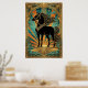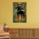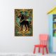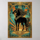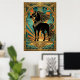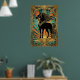 Poster Art Deco Black Horse Statue Sunburst Teal Gold