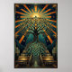 Poster Art Deco Celtic Tree of Life Pyramid Gold Teal