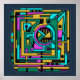 Este poster apresenta o design Mavericamera, Este design impressionante apresenta uma ousada fusão de arte deco elegance e vibração ciberpunk, apresentando padrões geométricos intrincados em ciano neonês, ouro metálico e fúcsia vívida. Perfeito para os entusiastas da arte moderna e fãs da estética retro-futurística, esta peça traz energia dinâmica e sofisticação a qualquer cenário.