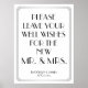 Excelente impressão com quadro prateado e texto personalizável - você pode adicionar seu texto, o nome da noiva e do noivo e a data do casamento. As dimensões do impressão de sinal (poster) são de 18 por 24 polegadas (vertical).