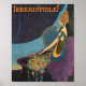 Vintage art deco design de mulher com um chá de flores e a legenda "Irresistível!" Púrpura colorida, blues e dourados. Vintage Mavis Perfume.