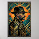 Poster Art Deco Noir Detective Fedora Profile Gold