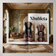 Art Deco design elements, characterized by luxury and traditional geometric patterns displayed. Xhubleta is a handmade garment worn by highland women and girls in Northern Albania, can be like a photo gallery in interior aesthetics advertised with photos. 8k, photorealistic, architectural photography, interior design magazine style, unrealistic rendering with engine 5