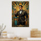 Command attention with this breathtaking Art Deco portrait of a queen seated upon a grand throne. Featuring intricate gold embroidery on a velvet gown and a massive radiating sunburst crown, this piece embodies the ultimate luxury of the Roaring Twenties. Set against a backdrop of marble pillars and deep teal geometric arches, this artwork is designed to bring regal opulence to any master bedroom, luxurious lounge, or sophisticated office.