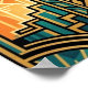 A whimsical character made of vintage film strips, swinging a film reel like a bat against a vibrant cityscape. A playful tribute to early animation and the magic of movie-making in a classic Art Deco frame.