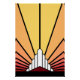 Um padrão solar clássico de deco de arte em cores de madrugada. Um padrão icônico da ascensão solar por trás de um edifício estilizado em forma de arte. Um design simples, mas elegante, verdadeiro à era.