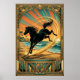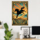 Poster Art Deco Wild Horse Beach Sunset Teal Orange