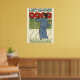 Linda poster de uma linda jovem pintando papoilas vermelhas. Vintage art deco style poster de Paris.