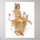 Beleza oriental exótica e de cabelos escuros no estilo art nouveau em túnica de ouro em poltrona elaborada com irises. Recursos de ilustração vitoriana restaurados realces de inclinação inversa e cor de fundo editável.