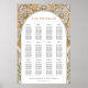 Guie seus convidados para seus assentos com um ar de elegância histórica usando este quadro de assentos inspirado em Art Nouveau. O design apresenta uma arca decorativa graciosa com detalhes intrincados em tons de ouro, verde-sábio e champanhe, moldando as colunas de nomes de convidados. O pano de fundo é o marfim macio, sutilmente contrastando os sotaques do ouro e os delicados padrões botânicos. No fundo, os nomes dos casais honrados são apresentados elegantemente em caracteres clássicos, complementados pela data da ocasião especial. Este gráfico de assentos combina funcionalidade com o sofisticado encanto do início dos anos 1900, perfeito para um casamento com temas antigos.