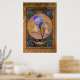Este poster único é um impressão de uma pintura original do artista digital Leslie Sigal Javorek, inspirada pelas cores, texturas, curvas graciosas dos Posters do Teatro do Século 19 por Art Nouveau Master, Alphonse Mucha. O ponto focal é um par de íris azul púrpura dentro de uma estrutura falsa 3d de metal (cobre envelhecido) que revela esmalte azul e verde atrás dele e uma grande borda externa de xisto. Consulte coordenação de posters desta série.