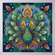 Esta design luxuosa mostra um pavão feito no estilo ornamentado de Art Nouveau. As penas do pavão desenrolam-se num espetacular mostrador de padrões intrincados e linhas giratórias características da época. A paleta de cores foca em tons de joias ricas - verdes esmeraldas, blues de safira e toques de ouro. Esta peça seria atordoante como uma grande canvas ou mesmo como uma réplica de vidro manchado. Apelando àqueles que amam o glamour vintage, os entusiastas de Art Nouveau e os admiradores do ornamentado, inspirado na natureza. Ideal para hotéis butiques, salões de beleza sofisticados, ou como um artigo em elegante decoração doméstica.